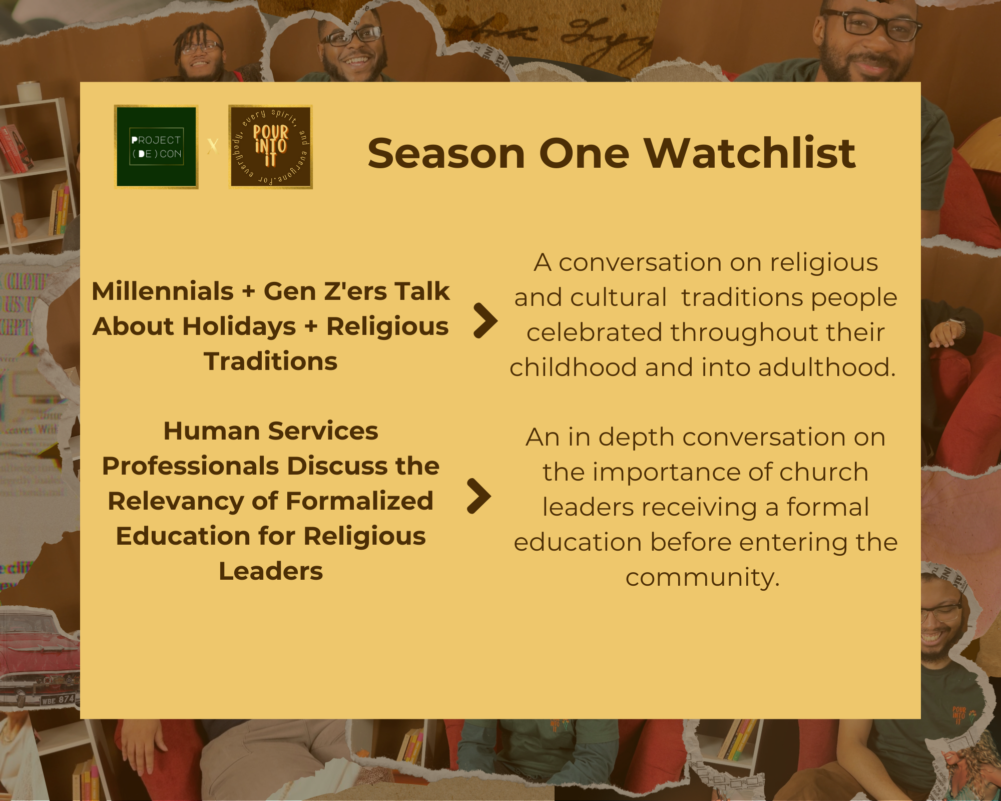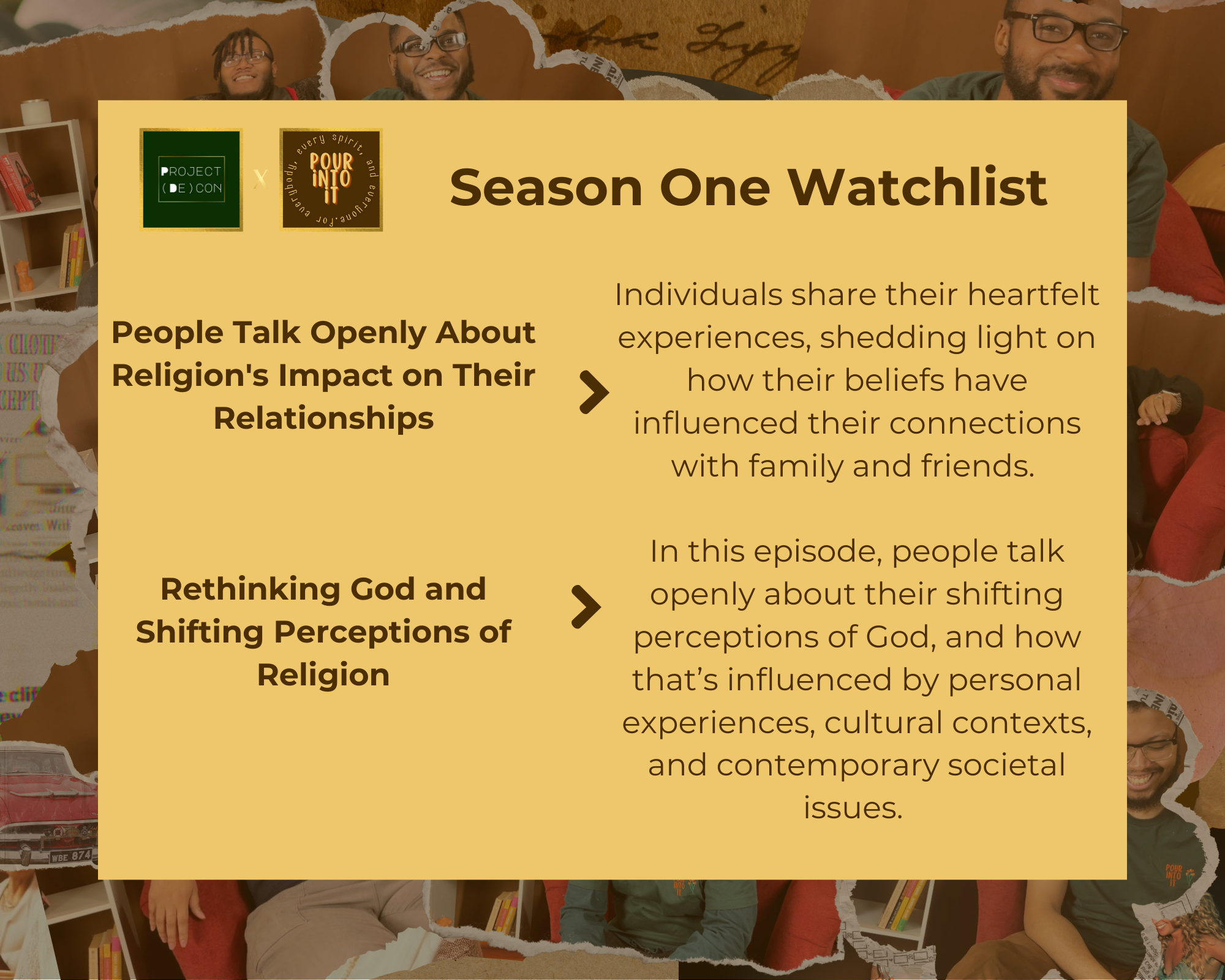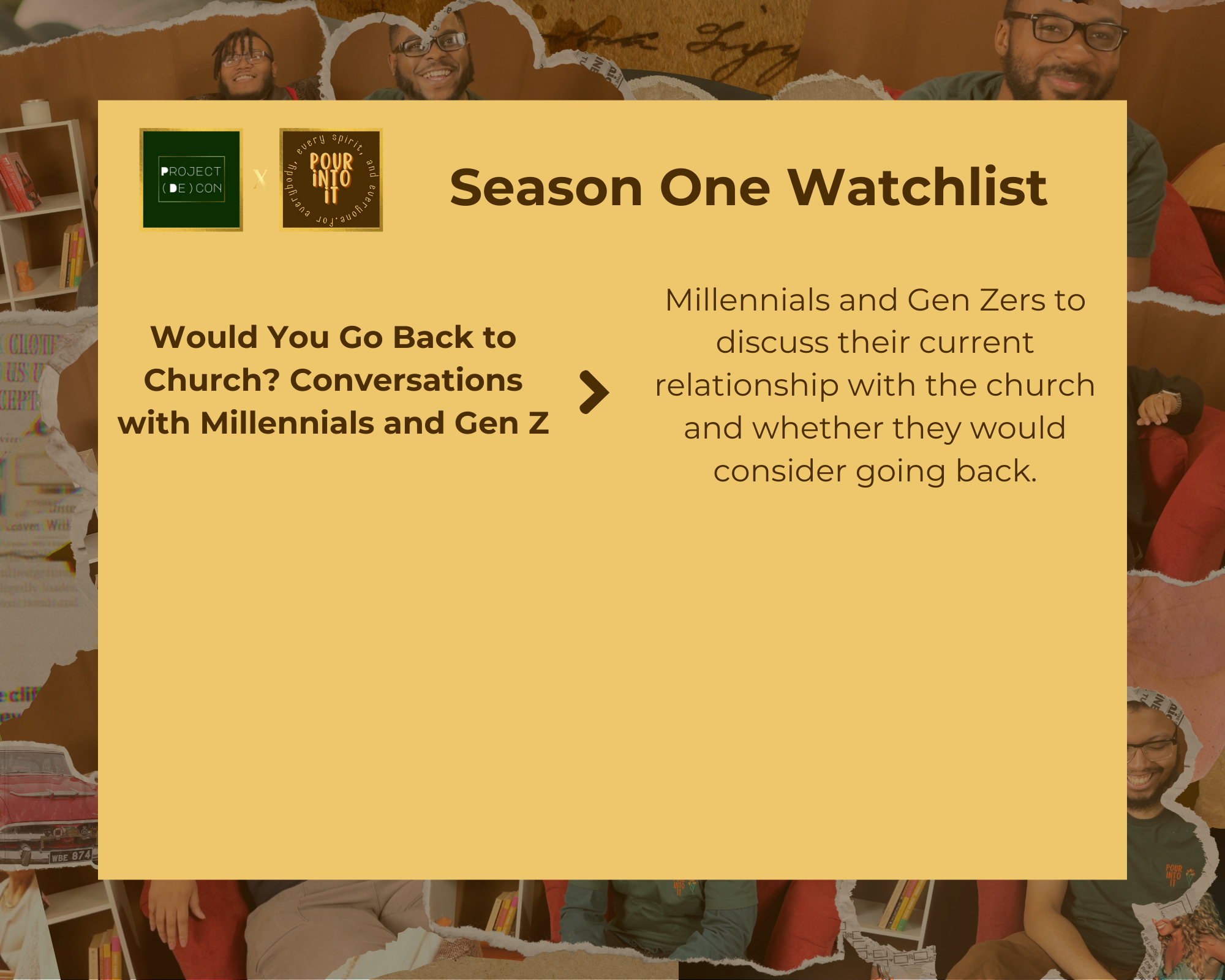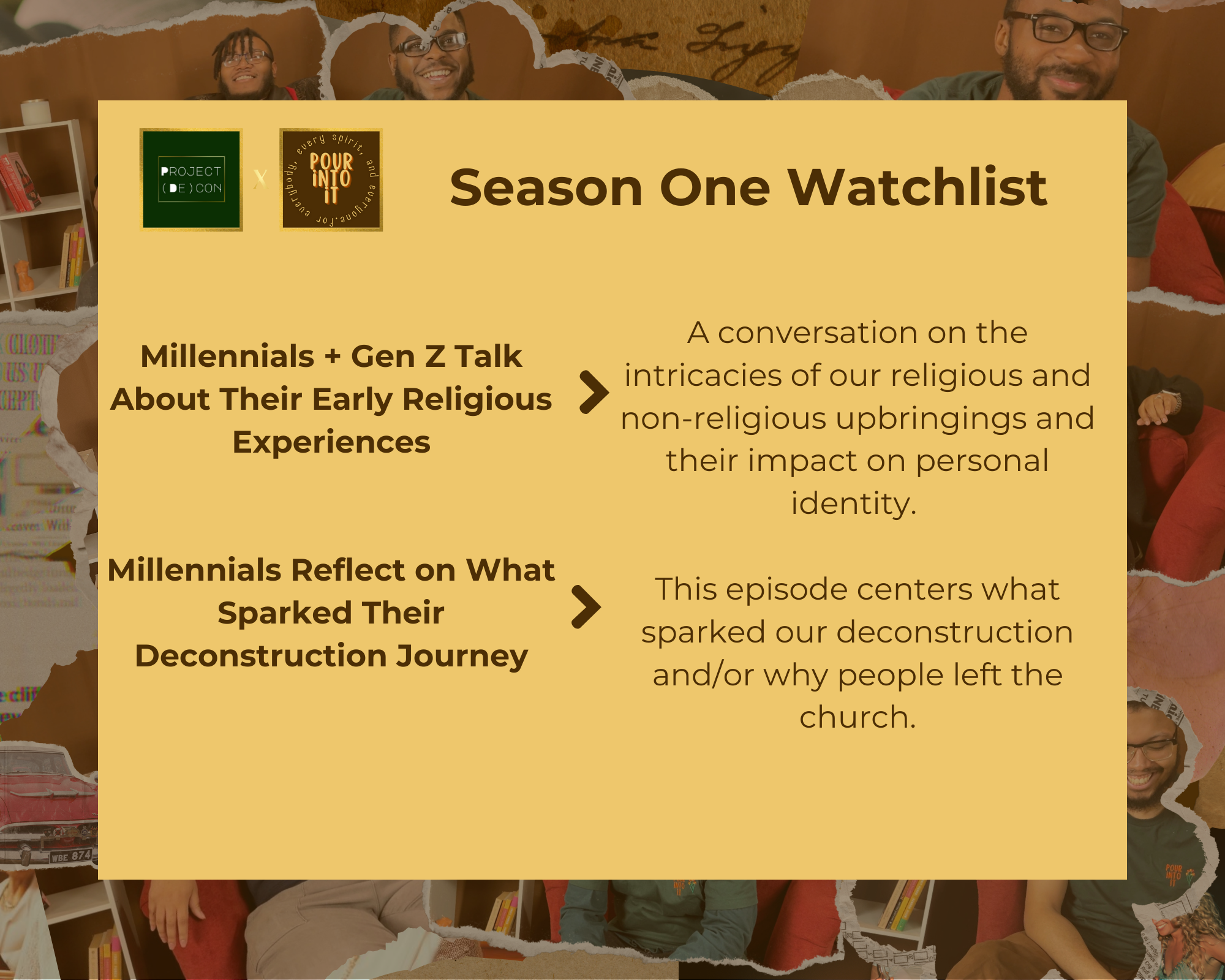 Project (De)Construction is a web series that centers intergenerational conversations about the shifting relationship between people and the church. Through candid discussions, we explore personal experiences with faith, religious institutions, and spiritual journeys—or the absence thereof—in a non-judgmental space. Created in response to declining church attendance and evolving beliefs, Project (De)Construction amplifies voices often overlooked in mainstream religious discourse. By centering authenticity, curiosity, and community, we invite listeners to engage in open dialogue about faith, doubt, and what it means to (de)construct, rebuild belief on their own terms, or simply not believe.